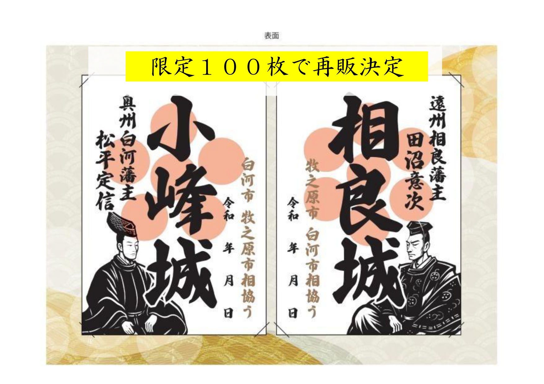 大河ドラマ【べらぼう】をきっかけに誕生した、小峰城と相良城の限定御城印セットを販売します🏯✨ この機会に各市を訪れ、お手に取ってご覧ください😌 白河市×静岡県牧之原市の友好記念御城印セットですが、完売いたしました! ご購…