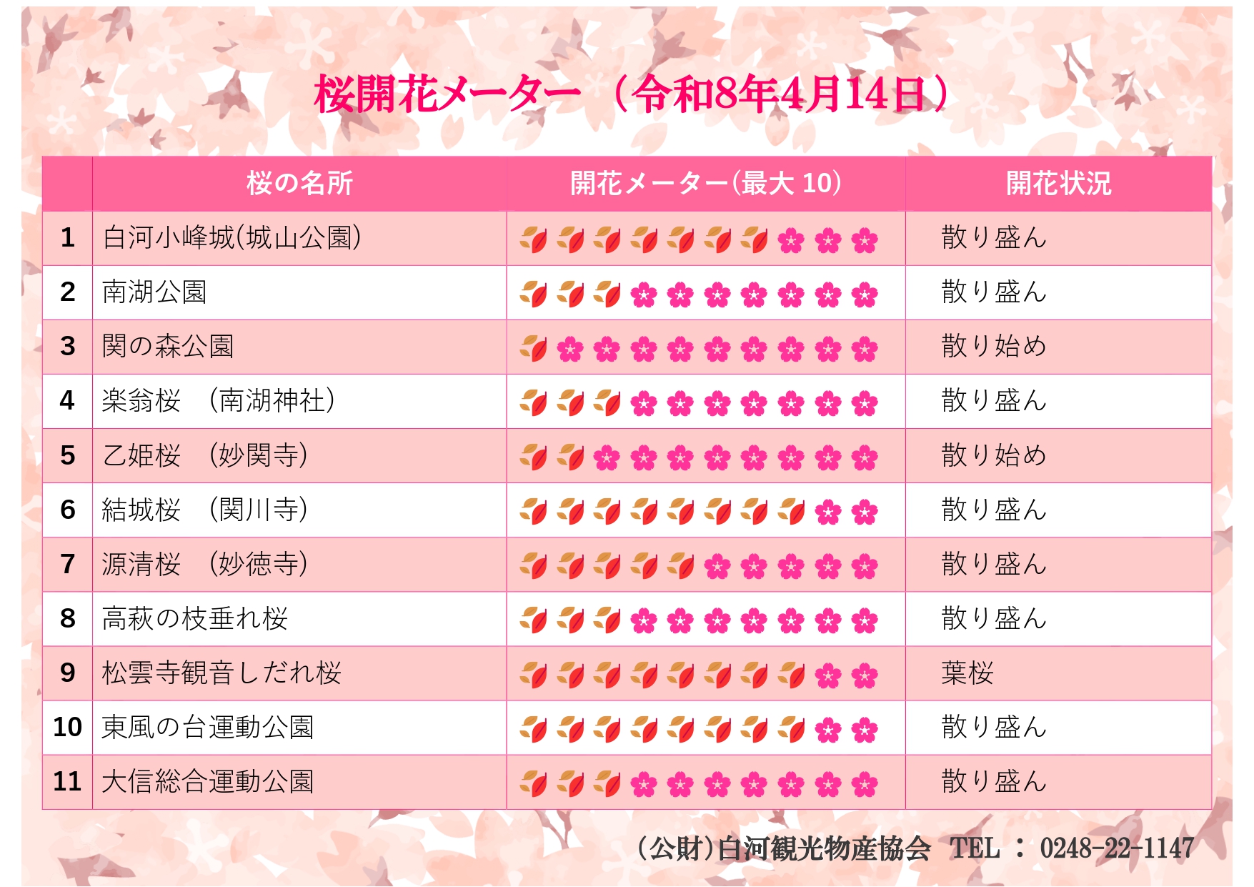 しらかわさくら情報(4/14更新)
