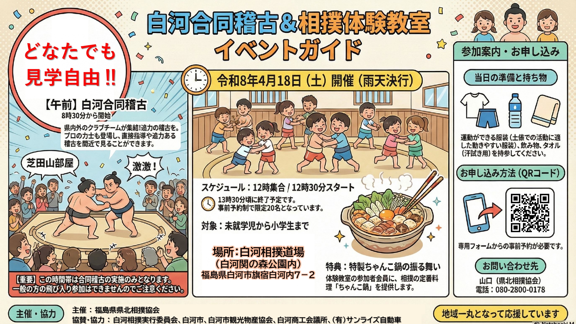 4/18(土)に白河合同稽古&相撲体験教室が開催されます🖐️
